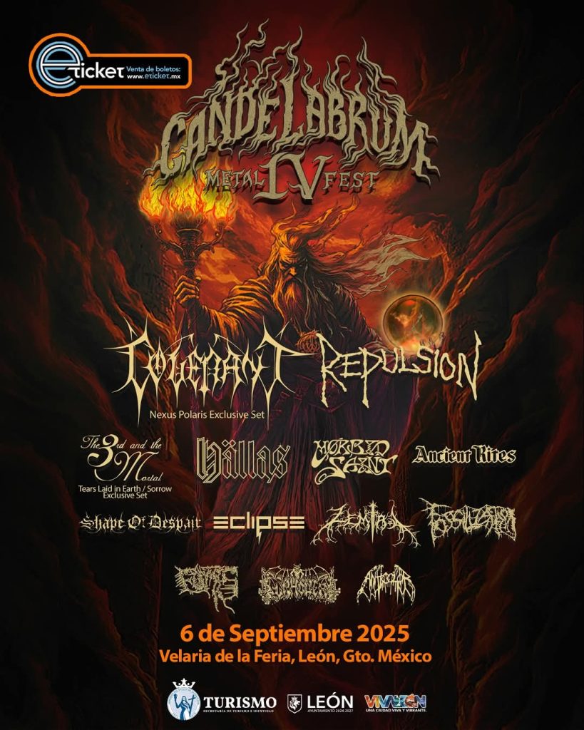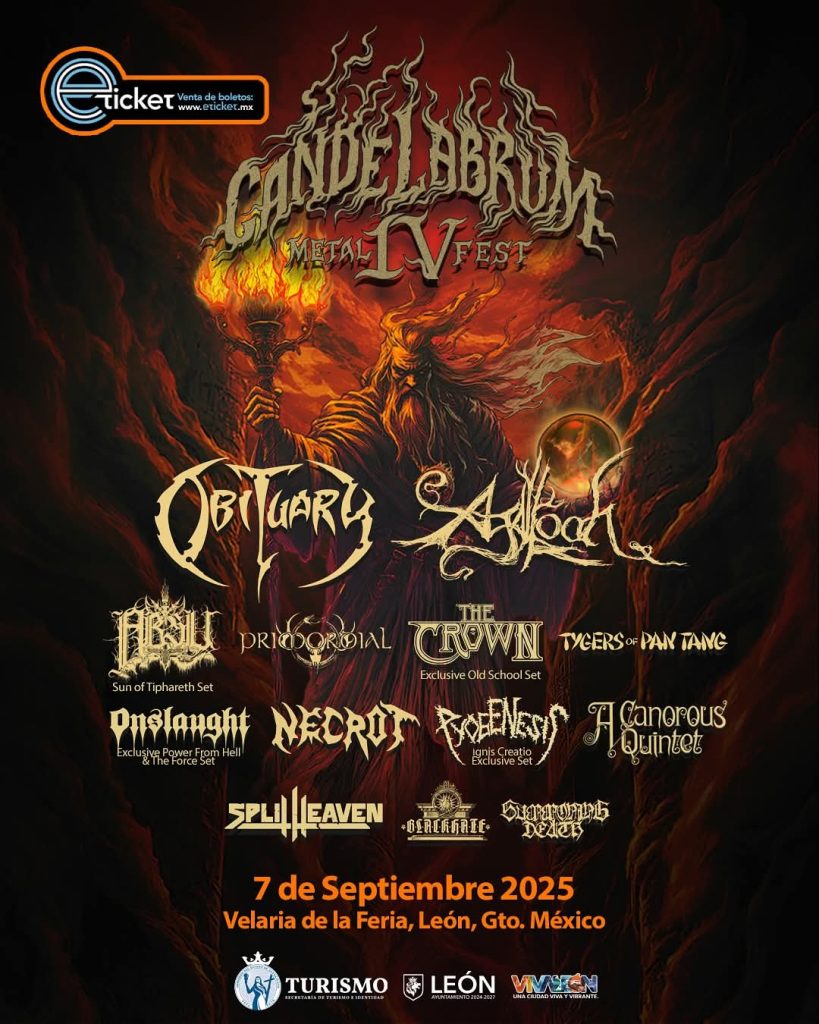 El Candelabrum Metal Fest IV (2025): está programado para el 6 y 7 de septiembre, esta edición promete seguir la tradición de ofrecer una experiencia única para los amantes del metal. El cartel incluye a bandas como Obituary, Agalloch, Covenant, Primordial, Tygers of Pan Tang, Necrot y Hellripper, entre otras. Además, se ha confirmado la participación de destacadas bandas mexicanas como Split Heaven, Fumes y Blackhate. Un cartel que, para los que realmente aman el metal, es brutal.