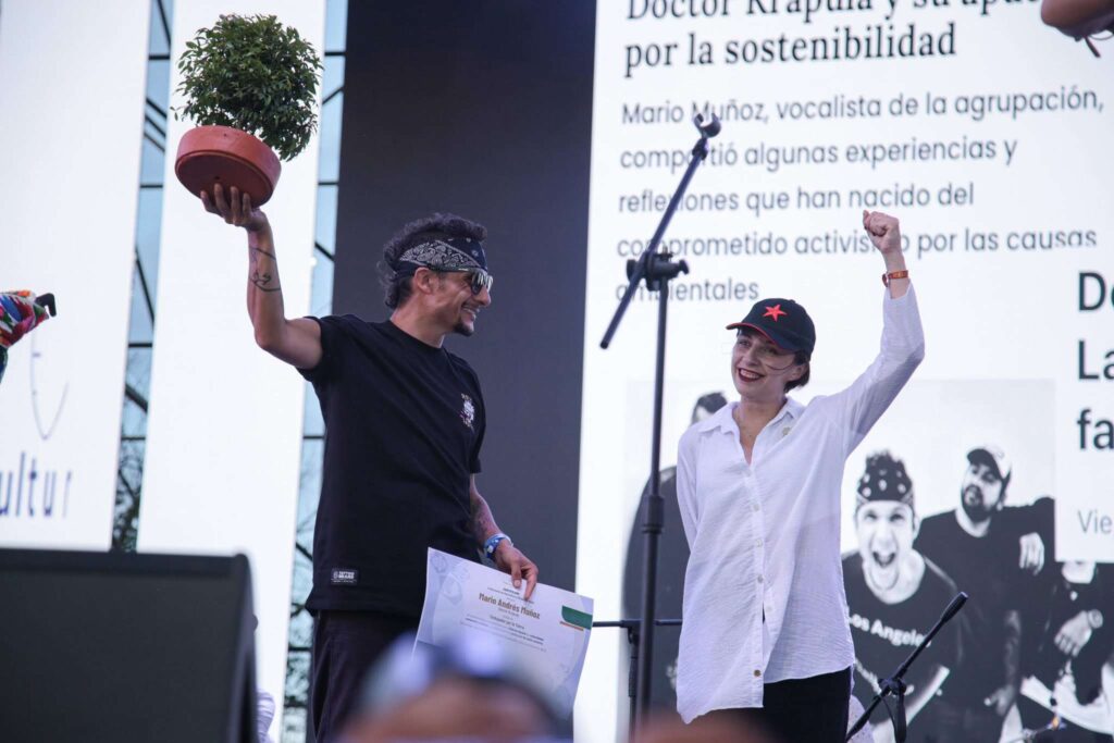 “Para nosotros es un honor ser Embajadores por la Tierra y es también la continuación de nuestra misión de ser unos activistas por el planeta, por los campesinos, por los pueblos indígenas, por la paz en los territorios, y para eso vamos a trabajar de aquí en adelante” Explica Mario Muñoz, vocalista de Doctor Krápula.