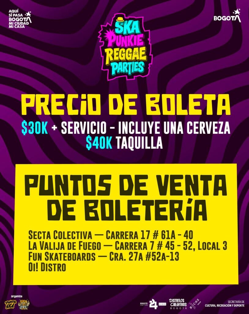 Con seis fechas, más de veinte proyectos en tarima, más de 100 artistas músicos en tarima y una apuesta clara por la circulación real e independiente, el Ska Punkie Reggae Parties 2026 se consolida como uno de los circuitos más importantes del primer semestre del año en Bogotá.