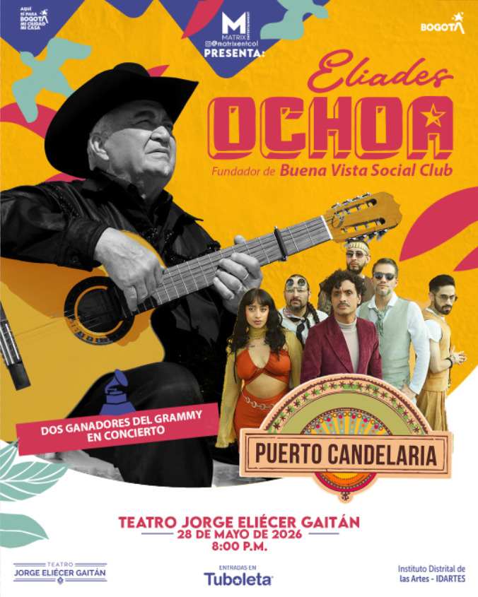 Hay conciertos que se escuchan y otros que se recuerdan para siempre. El próximo 28 de mayo, el Teatro Jorge Eliécer Gaitán será el escenario de uno de esos encuentros históricos: Eliades Ochoa, fundador del legendario Buena Vista Social Club, llega a Bogotá para compartir escenario con Puerto Candelaria, una de las bandas colombianas más creativas y celebradas de la escena actual.